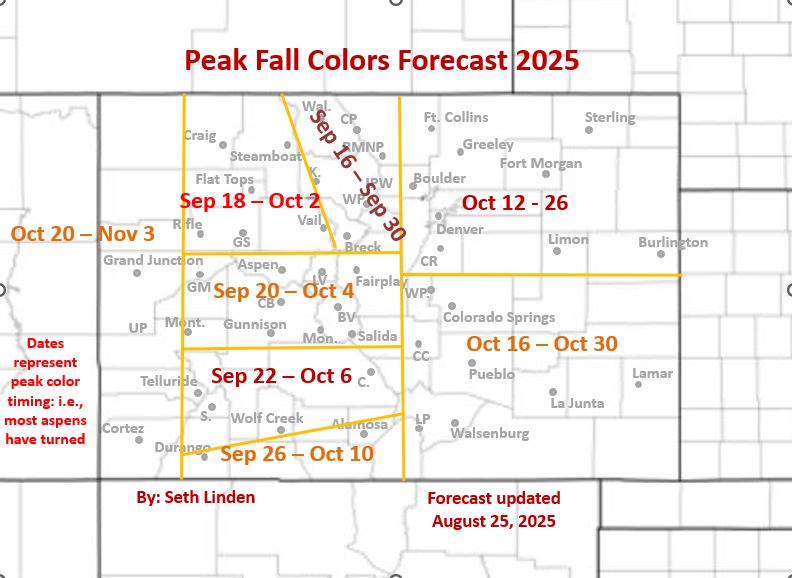 Our favorite weatherman, Seth Linden from Seth’s Weather Report, says colors will be early this year.