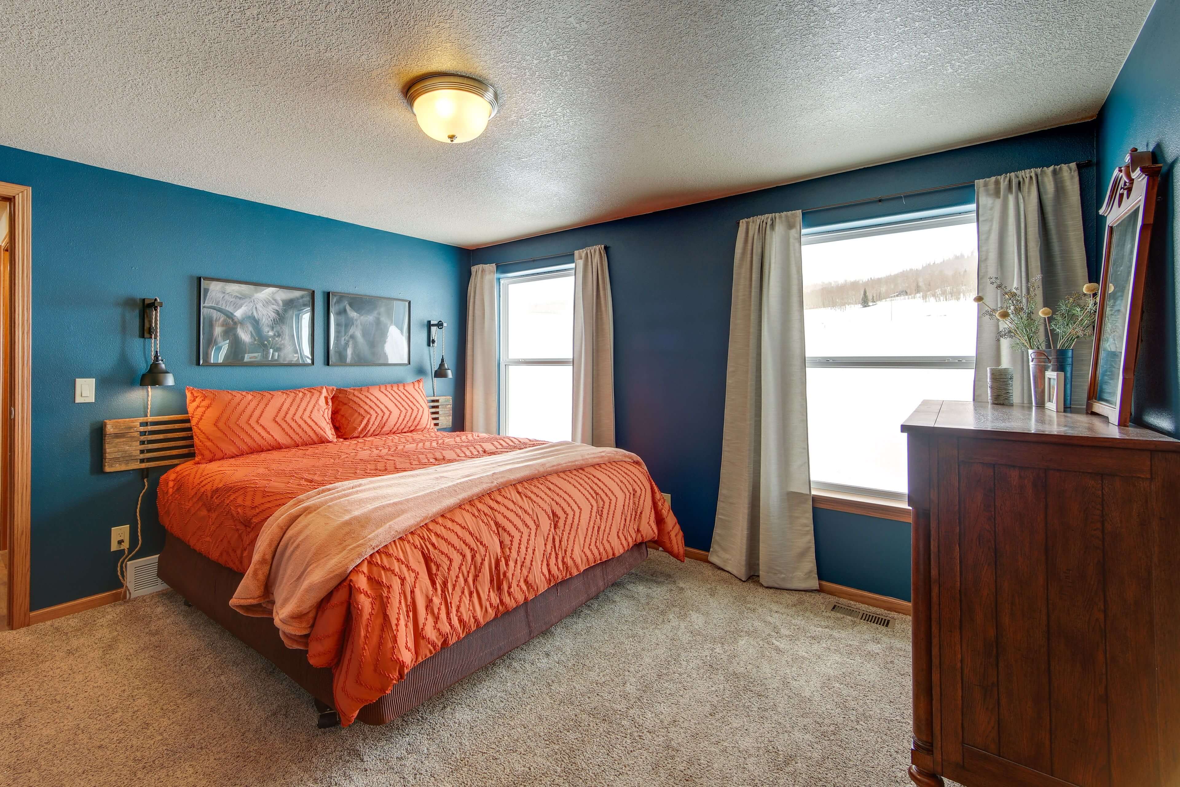 Gather your crew & spread out in The Ranch House, our most spacious stay near Steamboat. This 3-bedroom, 2-bath home sleeps 7 & features mountain views from every window, a full kitchen, coffee bar & Wi-Fi. Kids can play in The Corral or swing in the yard while you take in the sunset together. Guests also have access to the Hitchin’ Post with hot tub, pool table & more. Perfect for families, groups or retreats with room to relax after hiking, fishing, boating or riding nearby.