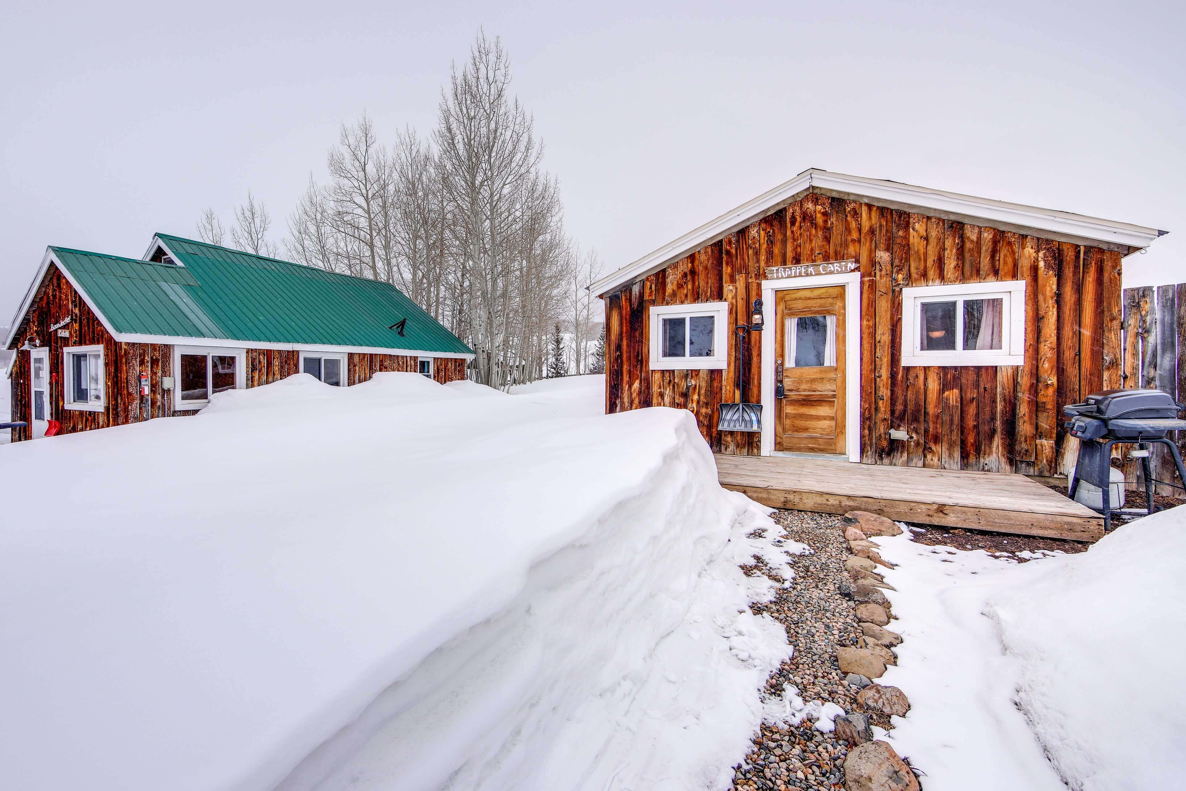 Escape to the Trapper Cabin, a vintage retreat with big views of aspen-covered hills, just 30 minutes from Steamboat Springs. Sleeps 2+ with a queen bed & twin foldout. This cozy studio has a full kitchen, bathroom, Wi-Fi, & barnwood accents throughout. Enjoy sunsets on the porch or head to the Hitchin’ Post to sit by the fire, play pool, throw darts, or soak in the hot tub. Pet-friendly & close to trails, fishing, boating & snow sports. Perfect for couples, solo stays & small family adventures.